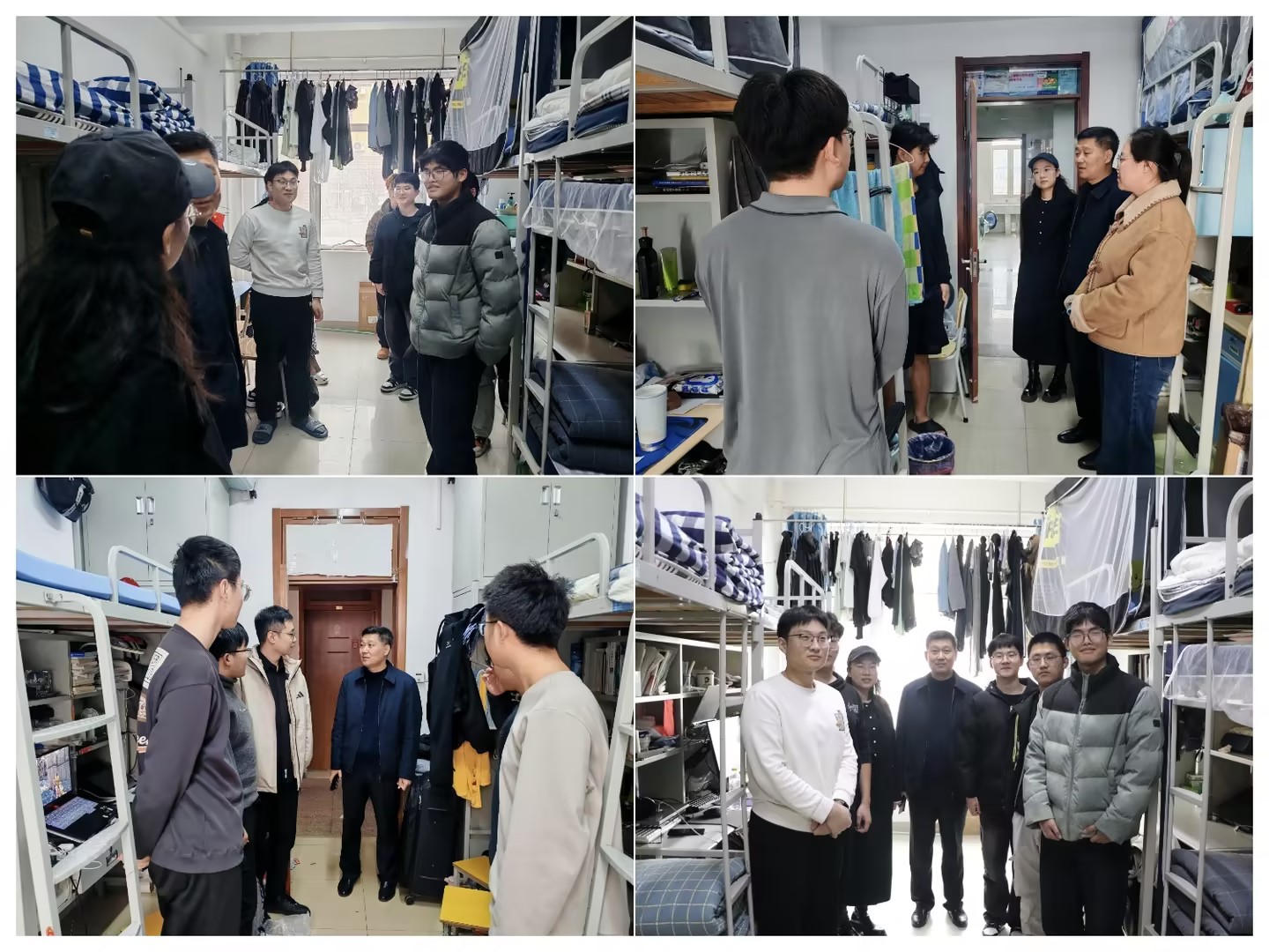 新学期伊始,为全面了解学生返校状态,排查宿舍安全隐患,确保开学各项工作平稳有序,3月8日下午,学院党委副书记兼副院长葛夫国带领全体辅导员深入学生宿舍,走访慰问返校学生,实地调研开学准备工作。
