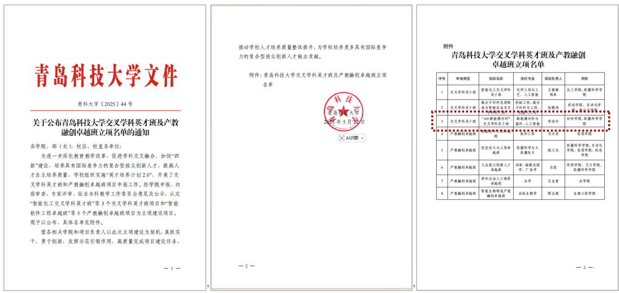 不断强化材料科学与工程山东省优势特色学科和青岛市产教融合学科建设;材料科学学科全球ESI排名升至1.195‰(去年同期1.448‰),材料科学与工程学科软科排名升至60(前30%),较去年上升了3个名次;2人入选山东省泰山青年学者专家,1人获评青岛市拔尖人才;新增认定2个山东省工程研究中心,青岛市纳米材料工程技术创新中心顺利通过绩效评估。