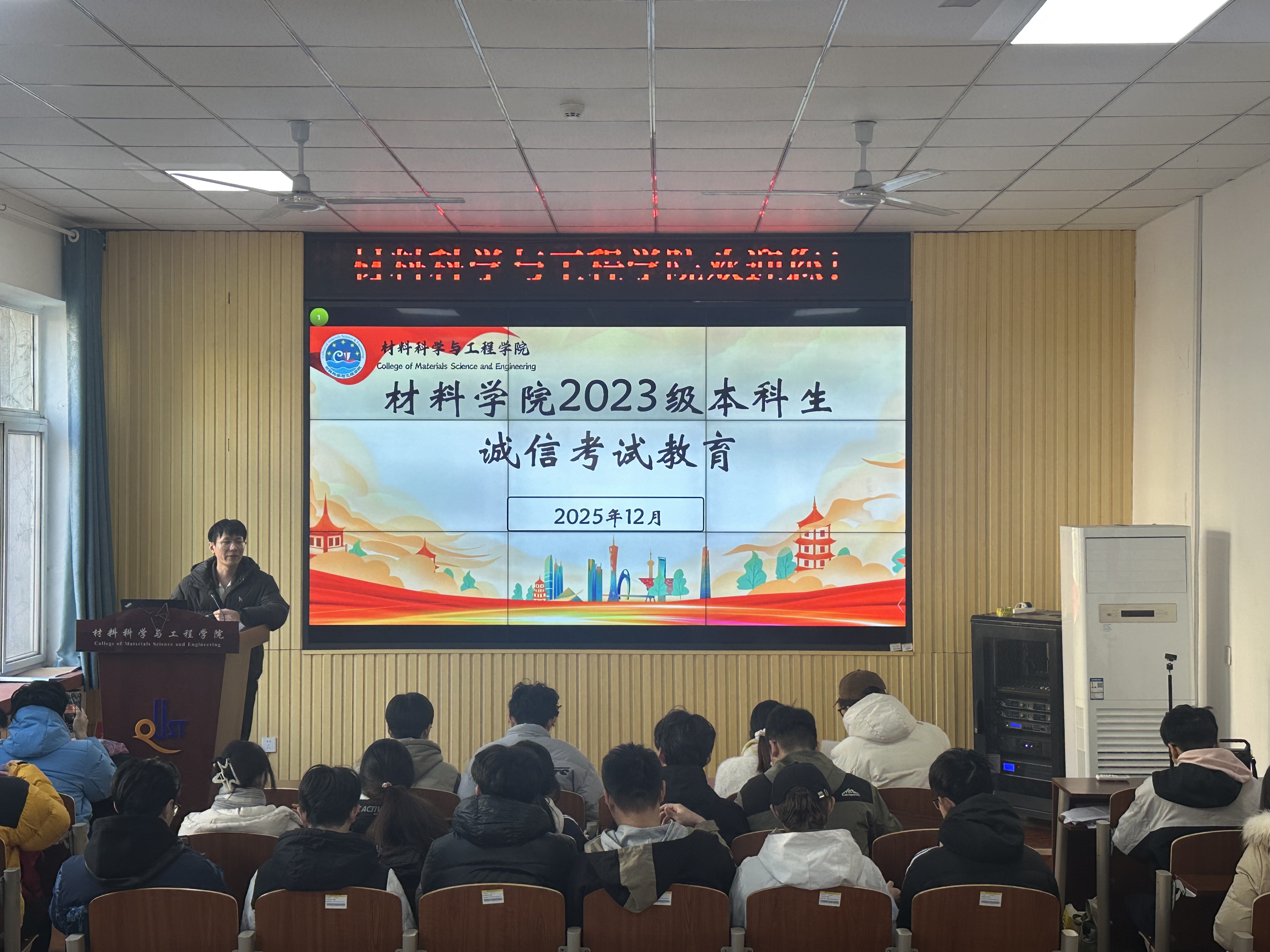 为深入贯彻学校学风建设要求,强化考风考纪,材料学院近期面向2023级全体本科生,集中组织开展了诚信考试专题教育,着力引导学生树立严谨求实的学业态度。